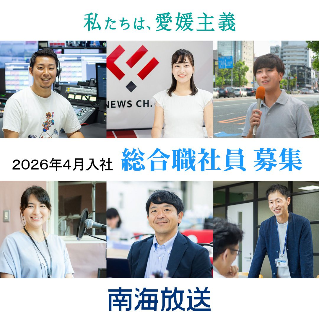2026年度入社 新卒採用募集スタート お知らせ 2025.03.012025.03.03 南海放送で採用を担当している岡田です。 南海放送では、2026年度入社の新卒採用を実施します。 今日からエントリーシートの受付を始めました。 南海放送の社員として、「愛媛を一緒に盛り上げたい!」という熱意をお持ちの方の応募をお待ちしています。 詳しくは、南海放送ホームページの「採用情報」(https://www.rnb.co.jp/saiyo/)をご確認下さい。