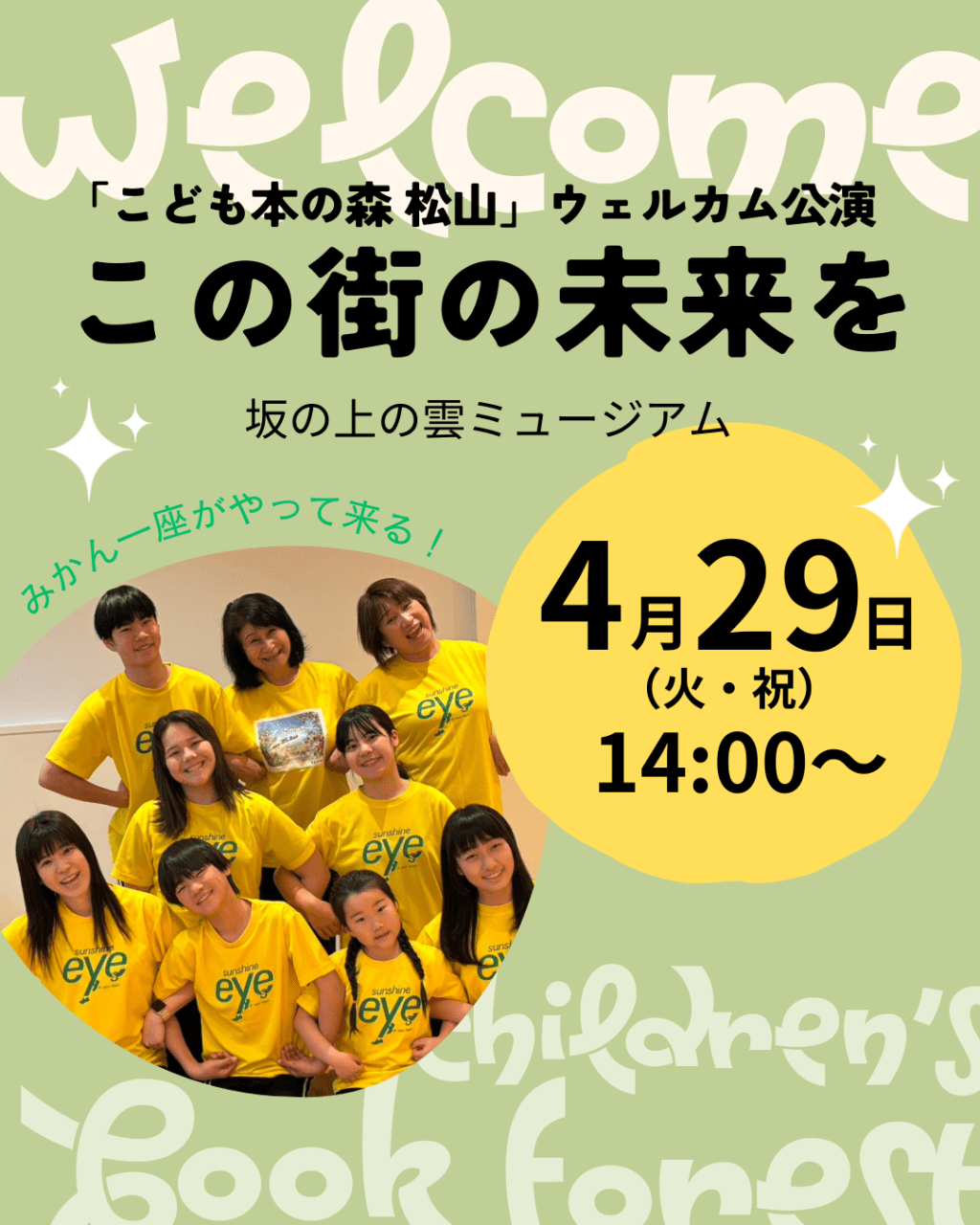 そして、4月29日(火・祝)14:00からは、地元・松山でのミュージカルでおなじみの「みかん一座」がミュージアムにやってくる!
