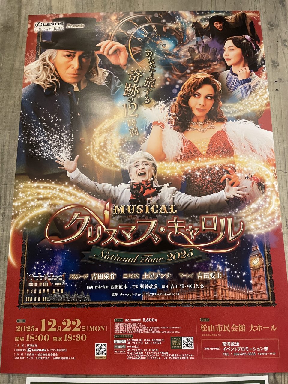 松山ステージサービスの勝間田です。ミュージカル クリスマスキャロル松山公演におきまして松山ステージサービスより道具、照明、音響の各セクションサポートをさせていただきました。