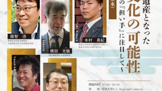 愛媛大学 【愛媛大学】令和7年度まちなか大学vol.4「世界無形文化遺産となった日本酒文化の可能性~生産・消費双方の『担い手』に注目して~」を開催 愛媛大学地域協働推進機構地域共創研究センターでは、まちなか大学vol.4「世界無形文化遺産となった日本酒文化の可能性~生産・消費双方の『担い手』に注目して~」を開催します。今回のまちなか大学では、お酒の造り手(生産・流通者)と受け手(消費者... 2025.09.29 愛媛大学