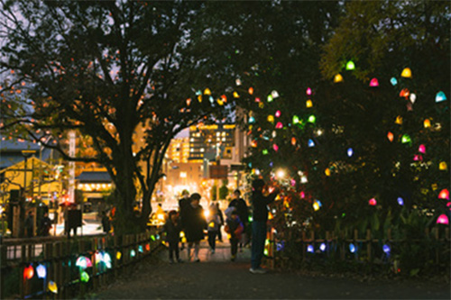 約3千個のひかりの実が、夜の道後公園を彩ります。