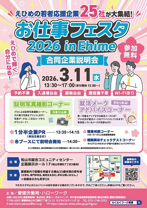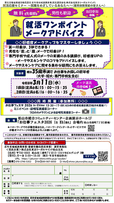■問合わせ先 若年者地域連携事業事務局(愛媛労働局委託事業)