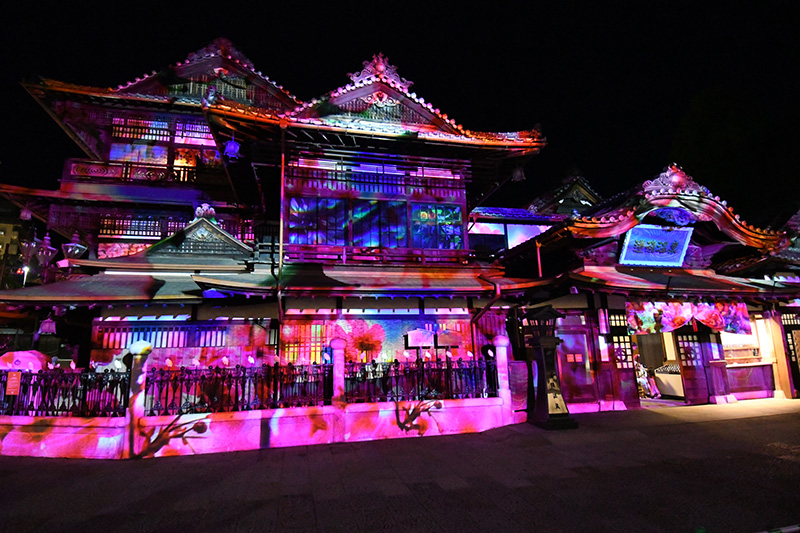 第2弾で、道後温泉本館にプロジェクションマッピングを上映するほか、道後温泉別館 飛鳥乃湯泉の中庭にインスタレーションの展示が始まりました。