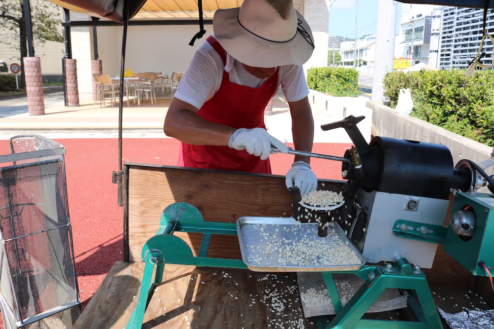 今週、坂の上に訪ねてきてくださったのは、愛媛大学法文学部兼地域協働センター中予教授の和田寿博さん。和田さんは、2007年にポン菓子の研究と実践を学生とともに始められ、その実績は様々なメディアに取り上げられています。「おいり」「パン豆」「ドンパン」など様々な呼び名のあるポン菓子の研究は、平和学の一環だと語る和田さん。その発祥には、一人の女性の平和への願いが込められているのです。今回は「ポン菓子機の開発史」「国産ポン菓子機の願いは、健康と平和」「愛媛のポン菓子の食文化」をキーワードに、お話を伺いました。